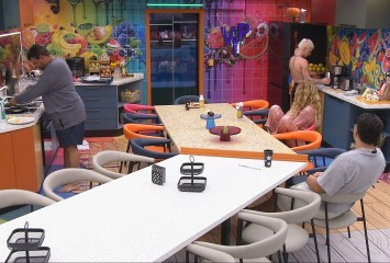 Na cozinha do BBB 26, Juliano Floss, Sarah Andrade, e Pedro preparam o café na manhã desta terç...